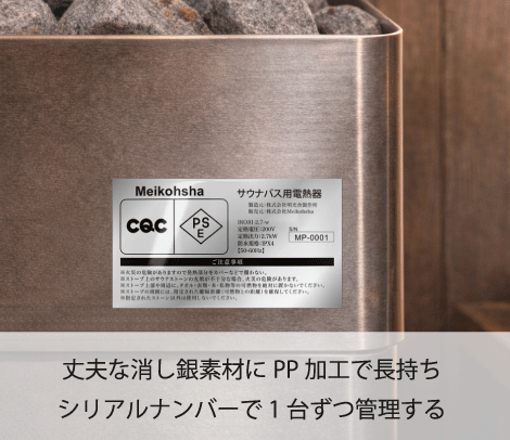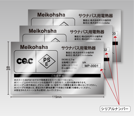 【印刷例】サウナバス用電熱器 PSEマーク入り シリアルナンバリングシール