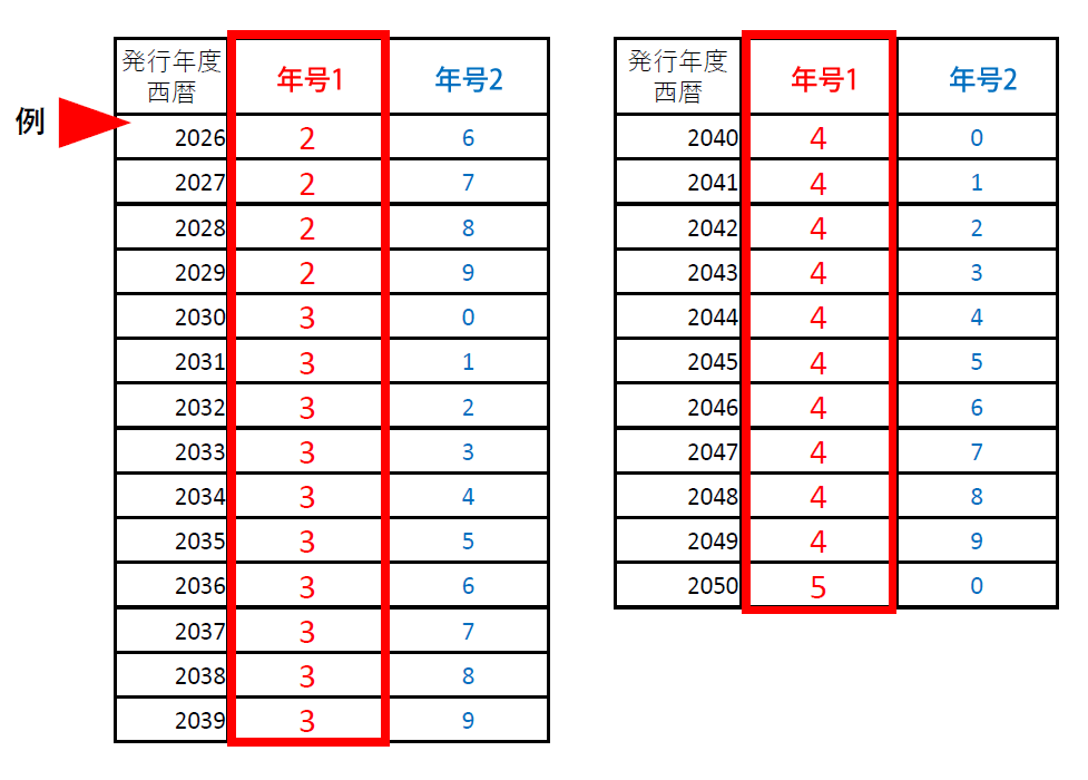新コード体系「年号1」と「年号2」一覧
