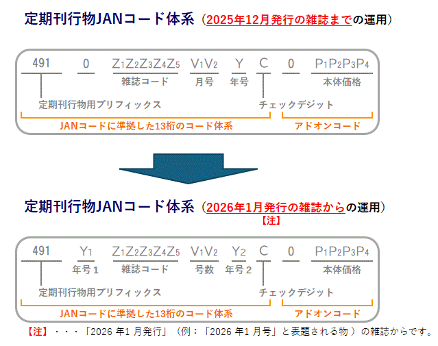 2026年1月発行の雑誌から定期刊行物JANコードのコード体系が変更されます。
